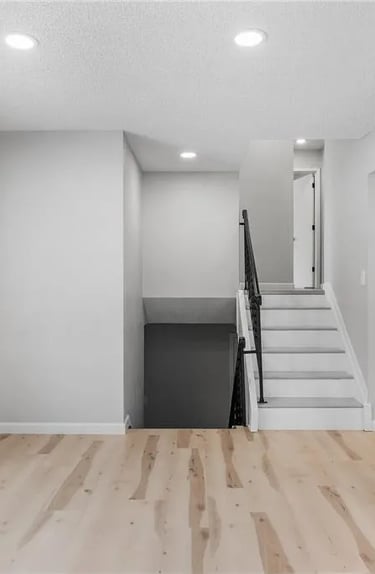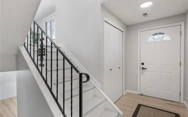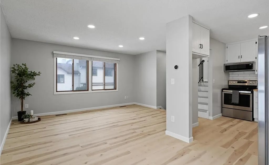The floor, stairs, and kitchen appliances were all remodeled. The new floor is made of hardwood, giving the space a warm and inviting feel. The stairs were replaced with sleek, modern ones that match the overall aesthetic of the house. As for the kitchen appliances, they were upgraded to stainless steel, adding a touch of elegance to the space. The remodel has truly transformed the entire look and feel of the house, creating a modern and sophisticated atmosphere.